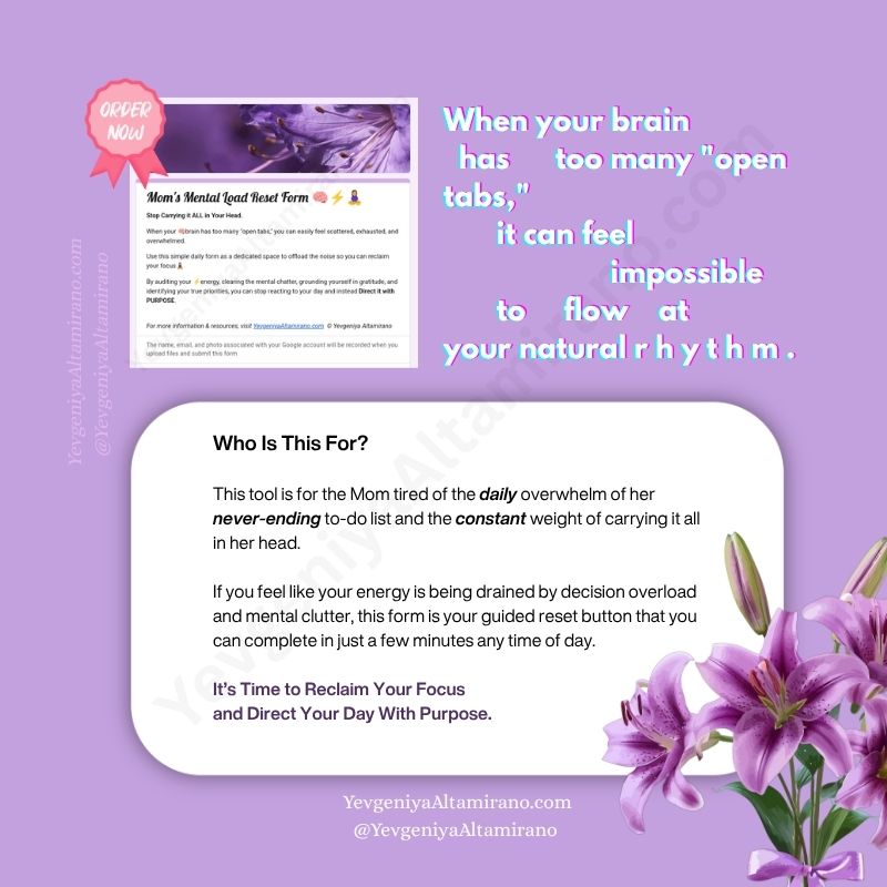 Mom’s Mental Load Reset Form designed by Yevgeniya Altamirano is not just a digital document; it is a strategic pressure-relief valve.